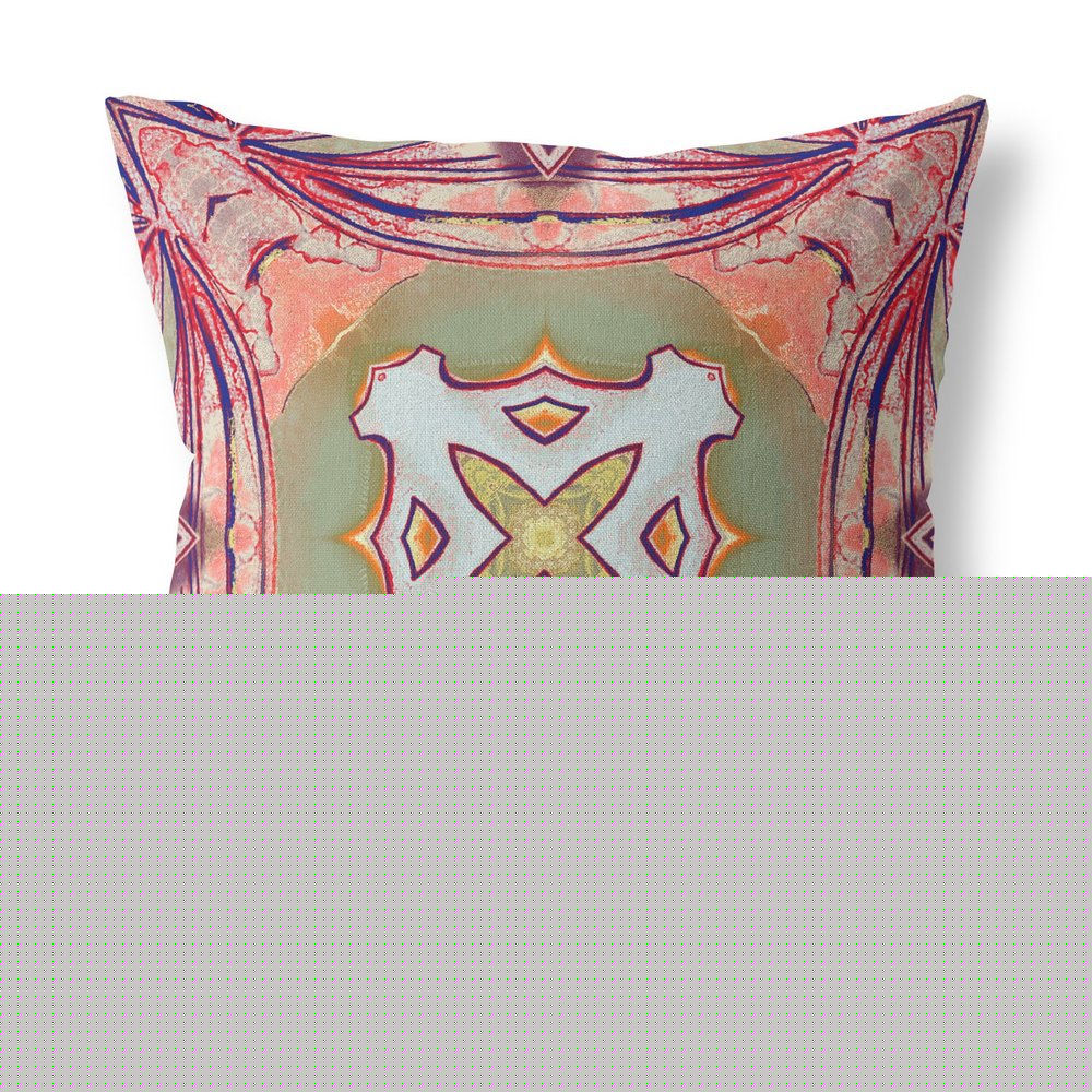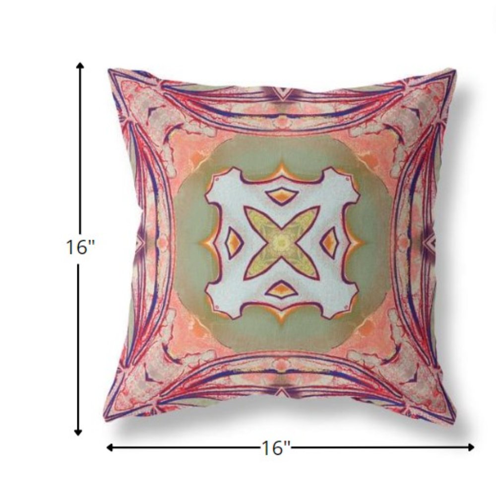 16” Magenta Green Geo Tribal Indoor Outdoor Throw Pillow