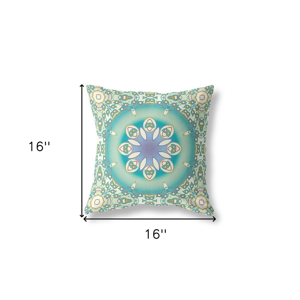 16" X 16" Beige And Green Zippered Geometric Indoor Outdoor Throw Pillow
