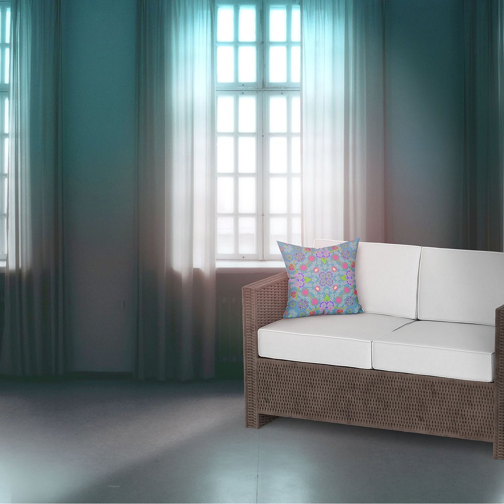 Bring a bit of fashion and zip to your space with this eye-catching and comfy 16" x 16" blue and green blown seam floral indoor outdoor throw pillow. Durable blue and green broadcloth has been used to give this pillow a beautiful look that will stand the test of time. A great decorative accessory to decorate indoors or out. Decorative pillows are a great way to change up the look and feel of your space easily and quickly. 5" H x 16" W x 16" D