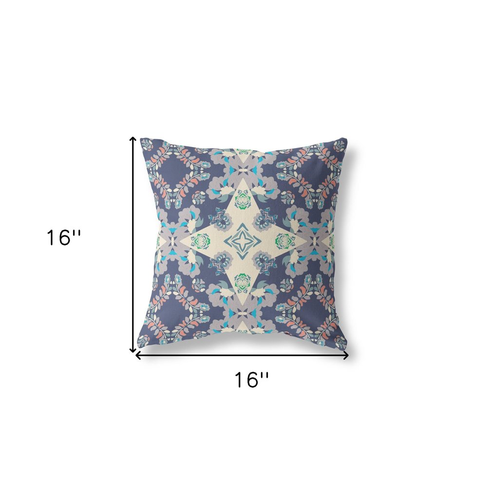16" X 16" Blue And White Zippered Geometric Indoor Outdoor Throw Pillow