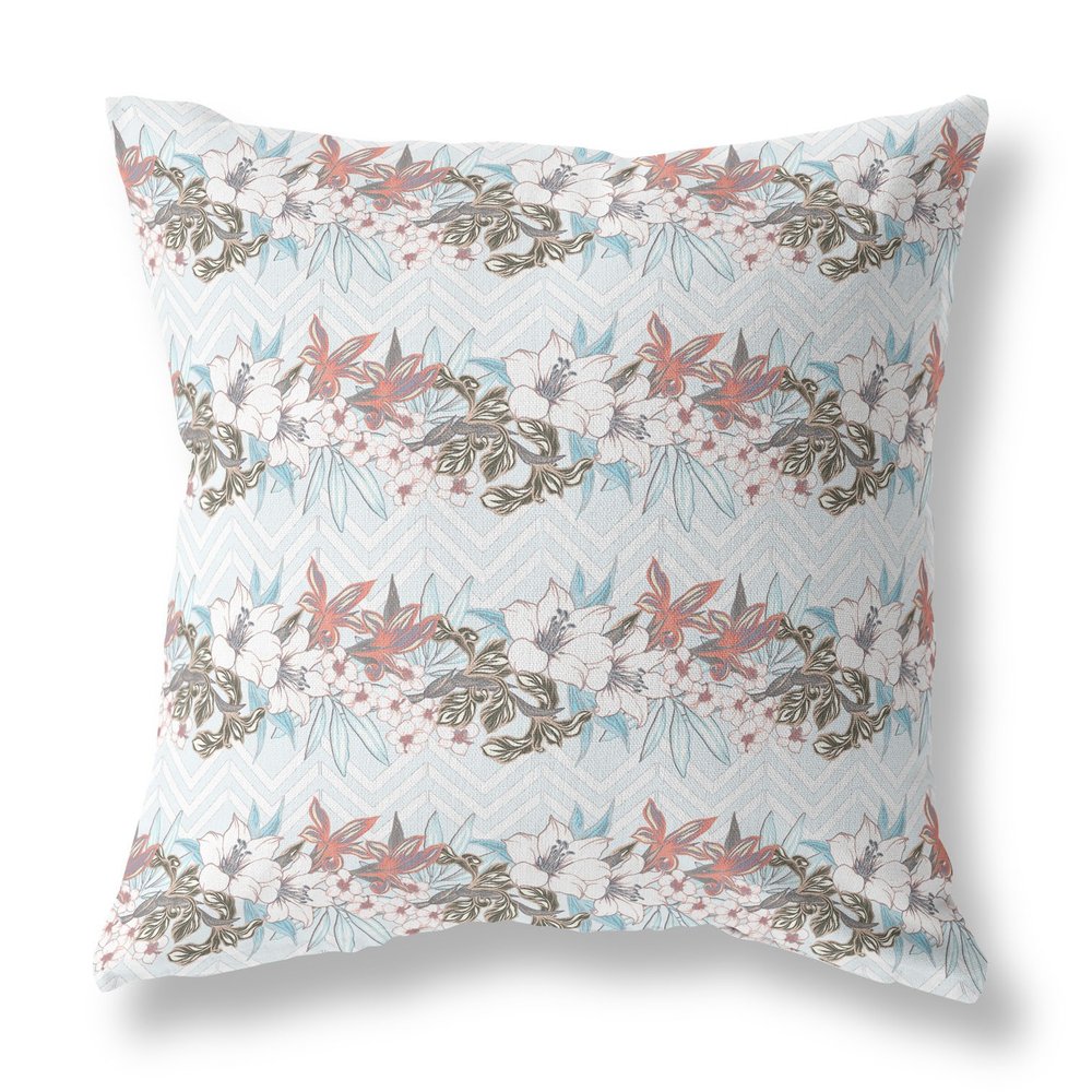 16" X 16" Light Blue Blown Seam Floral Indoor Outdoor Throw Pillow