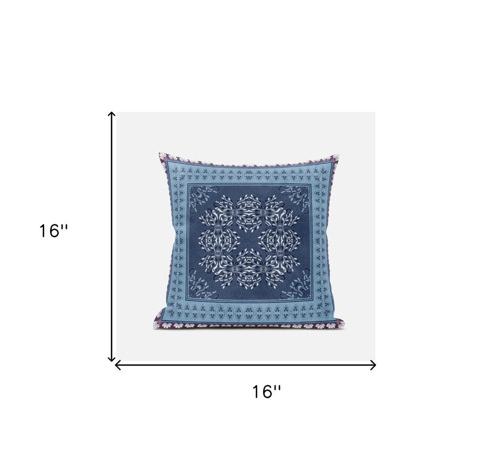 16" X 16" Magenta And Indigo Zippered Geometric Indoor Outdoor Throw Pillow