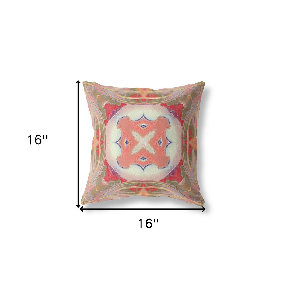 16" X 16" Muted Red Zippered Geometric Indoor Outdoor Throw Pillow