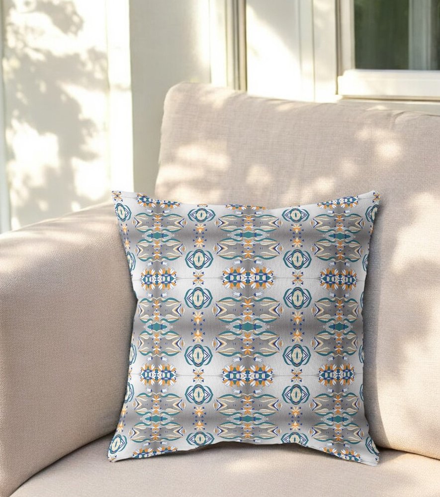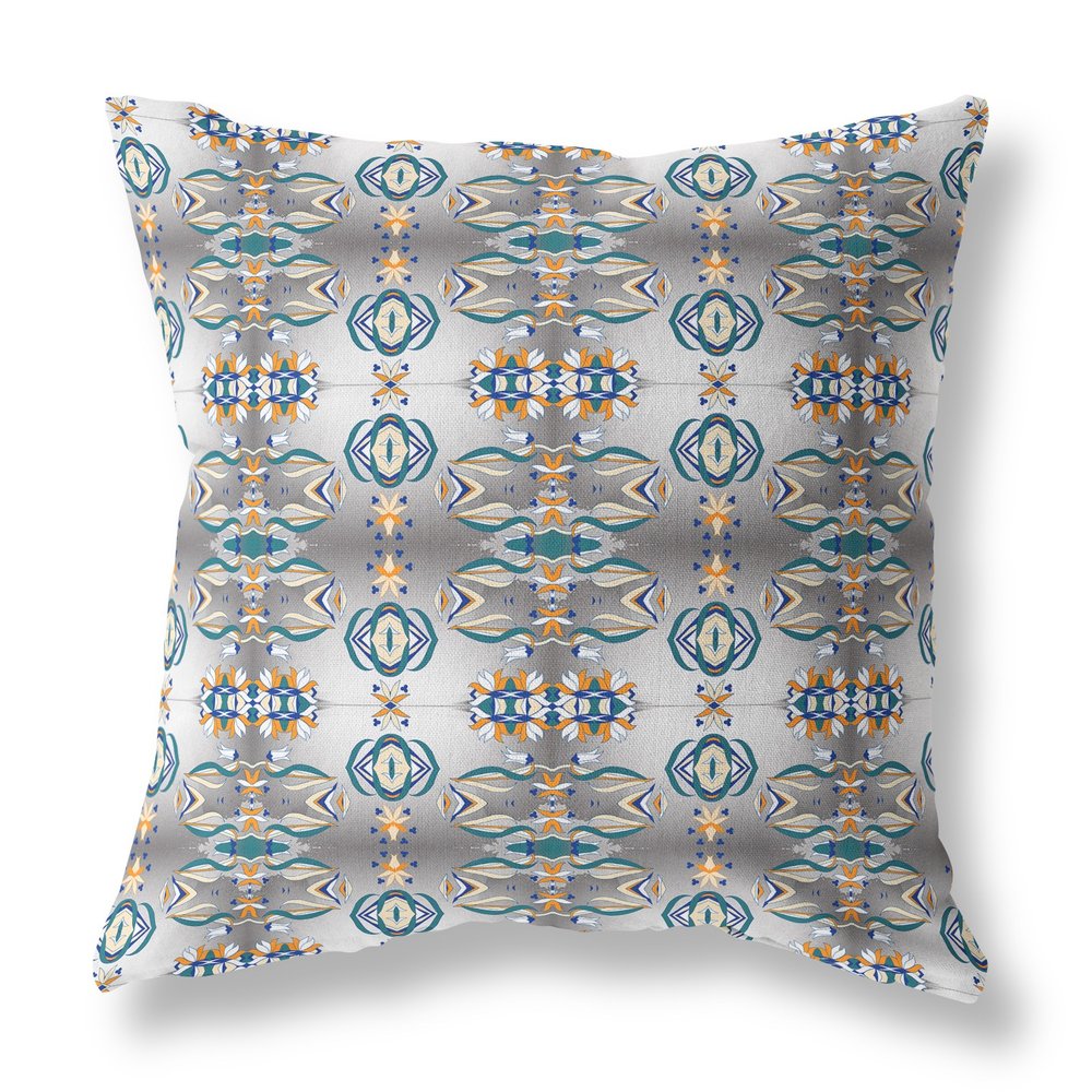 16" X 16" Off White And Brown Zippered Geometric Indoor Outdoor Throw Pillow