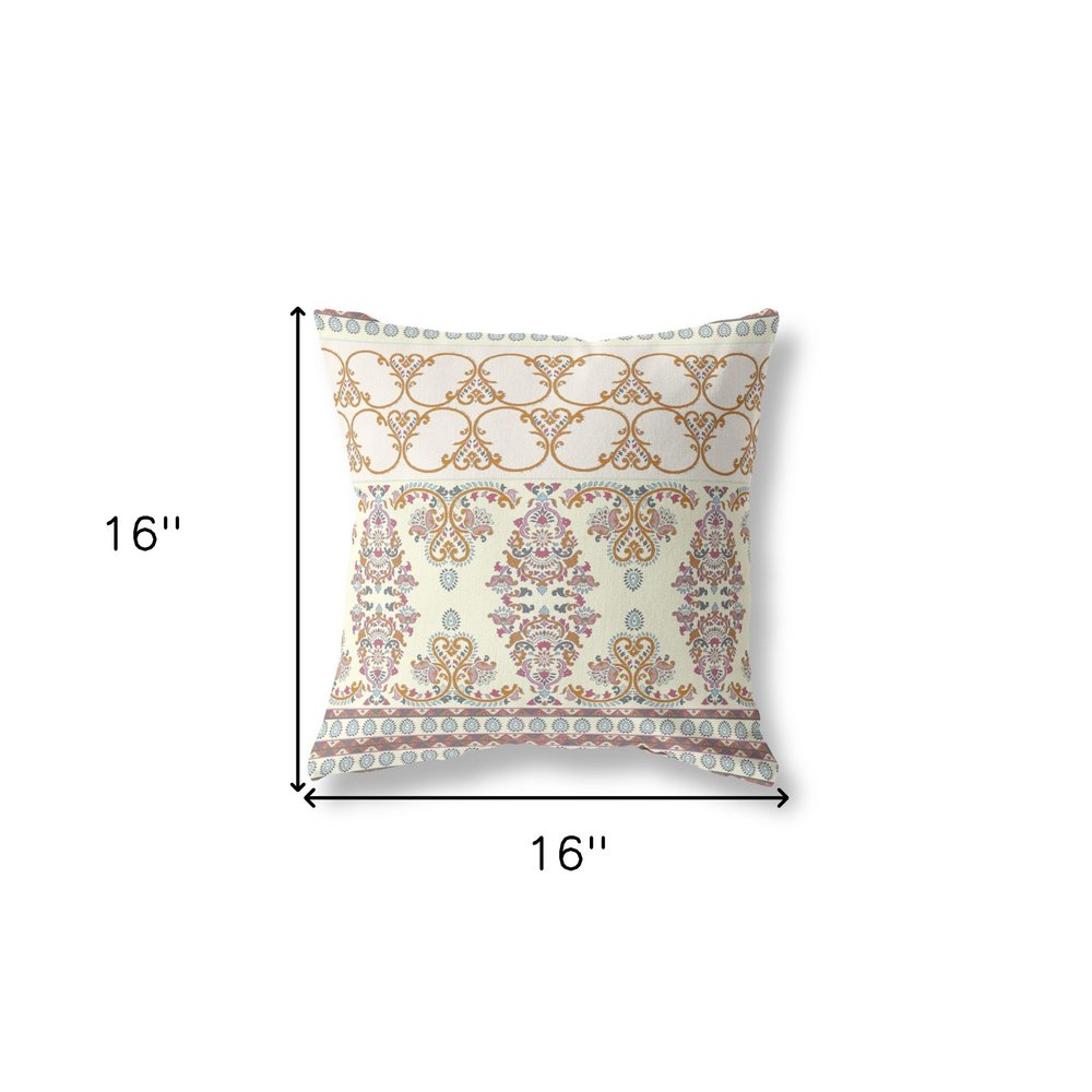 16" X 16" Off White And Orange Zippered Geometric Indoor Outdoor Throw Pillow
