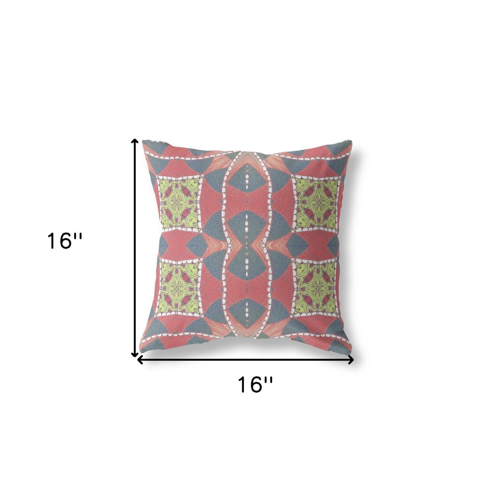 16" X 16" Red And Gray Blown Seam Geometric Indoor Outdoor Throw Pillow