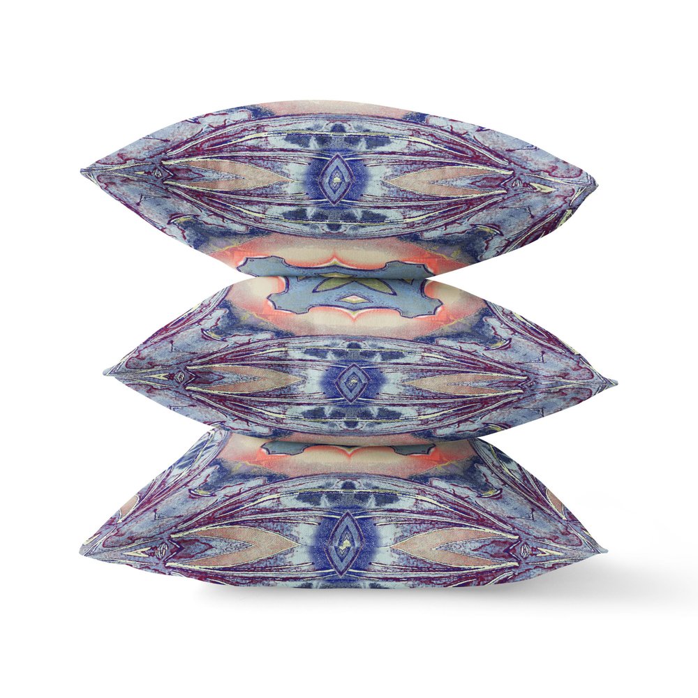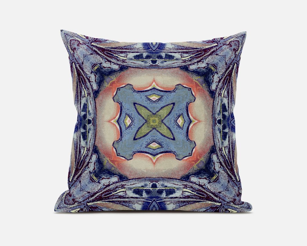 This 16" x 16" sky blue and peach zippered geometric indoor outdoor throw pillow will add a beautiful decorative accent to your decor. This sky blue and peach colored decorative pillow is made from high grade suede that is durable and long lasting. Durable and rugged enough for outdoors but can still be used inside as well. Decorative pillows are a great way to change up the look and feel of your space easily and quickly. 5" H x 16" W x 16" D