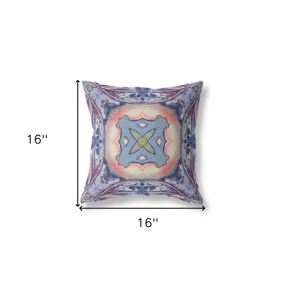 16" X 16" Sky Blue And Peach Zippered Geometric Indoor Outdoor Throw Pillow