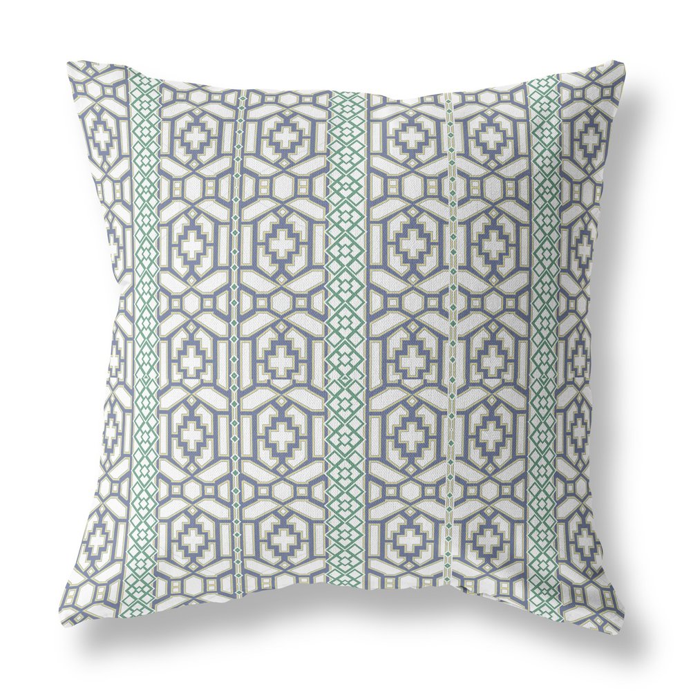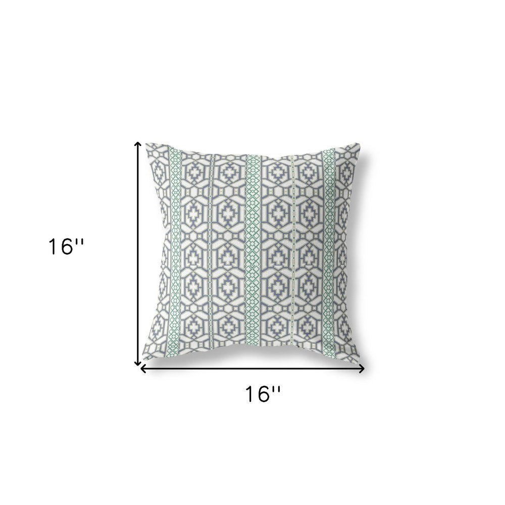 16" X 16" White And Gray Zippered Geometric Indoor Outdoor Throw Pillow