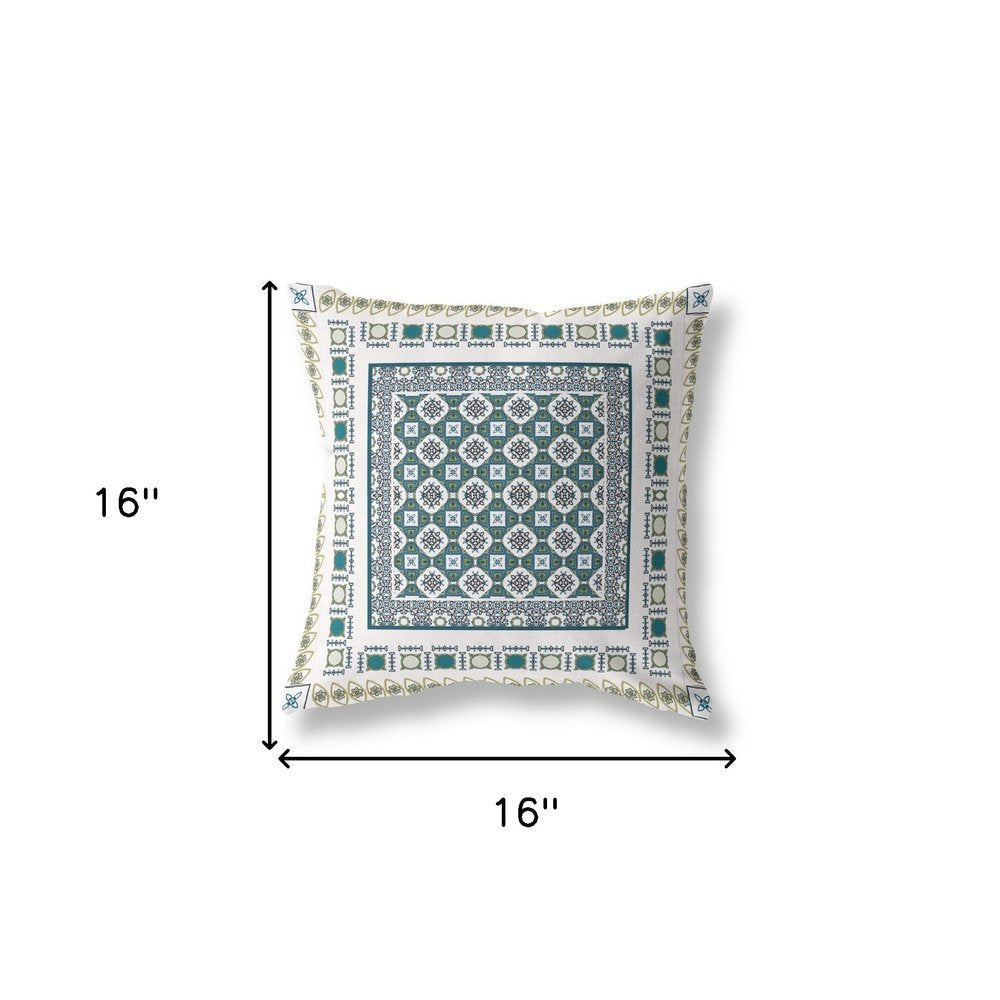 16" X 16" White And Green Broadcloth Floral Throw Pillow