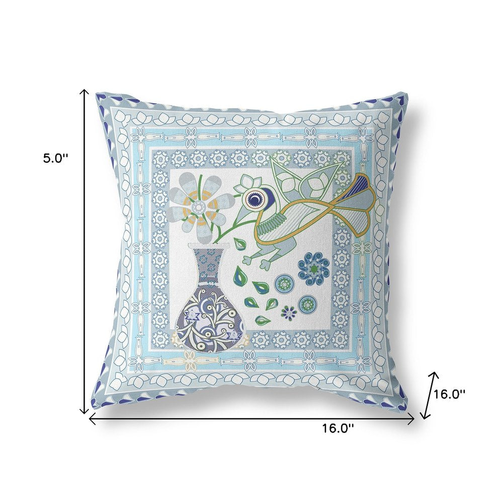 16" X 16" White And Grey Bird Blown Seam Abstract Indoor Outdoor Throw Pillow