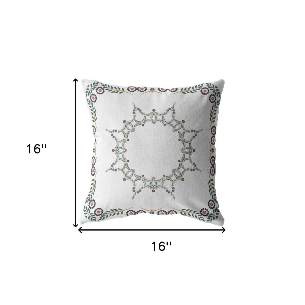 16" X 16" White Blown Seam Geometric Indoor Outdoor Throw Pillow
