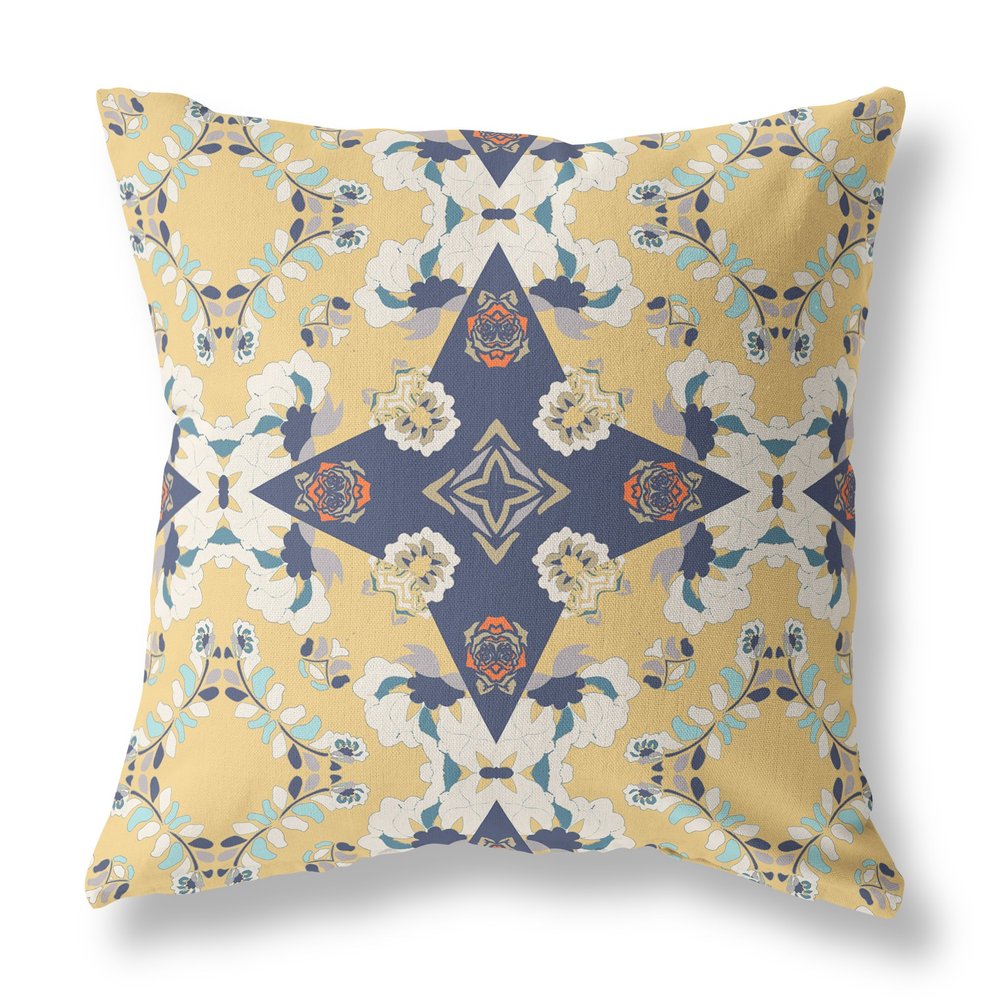 16" X 16" Yellow And Blue Zippered Geometric Indoor Outdoor Throw Pillow