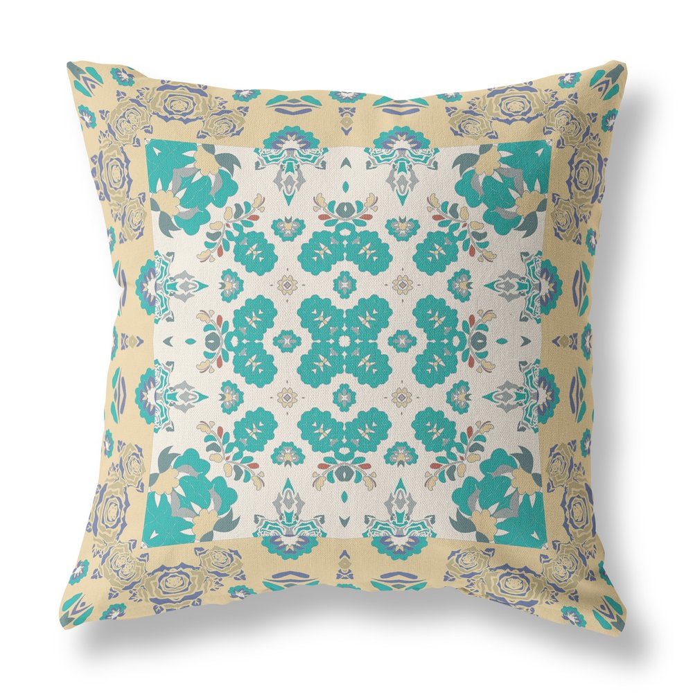 Unique and decorative, this comfortable 16" x 16" yellow and white zippered geometric indoor outdoor throw pillow will leave a lasting impression. The yellow and white coloring of the extremely durable and long lasting suede will add dimension and texture to your space. Durable and easy to care for this pillow is designed to withstand the elements and still look great. Decorative throw pillows add some pizazz but can also be comfy and supportive when you are lounging. 5" H x 16" W x 16" D