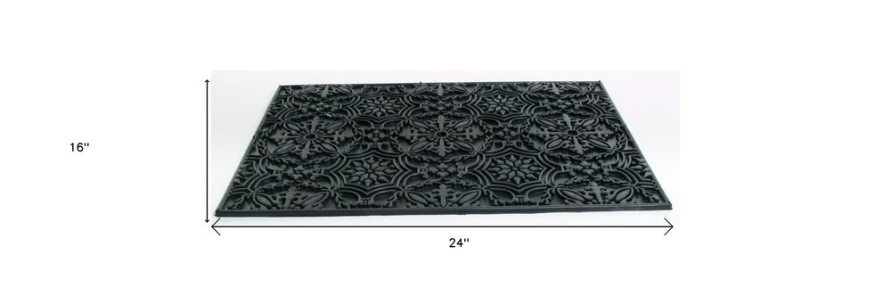 Ready to withstand heavy foot traffic, this 16-inch x 24-inch black rubber outdoor door mat is an ideal option for the front door or entrance way of your home or business. Crafted from rubber, this mat is not only functional but is a visually appealing accessory to welcome people to your home or business. Add this decorative mat to create a practical yet inviting welcome to all who enter. 16-inch H x 24-inch W x 0.5-inch D