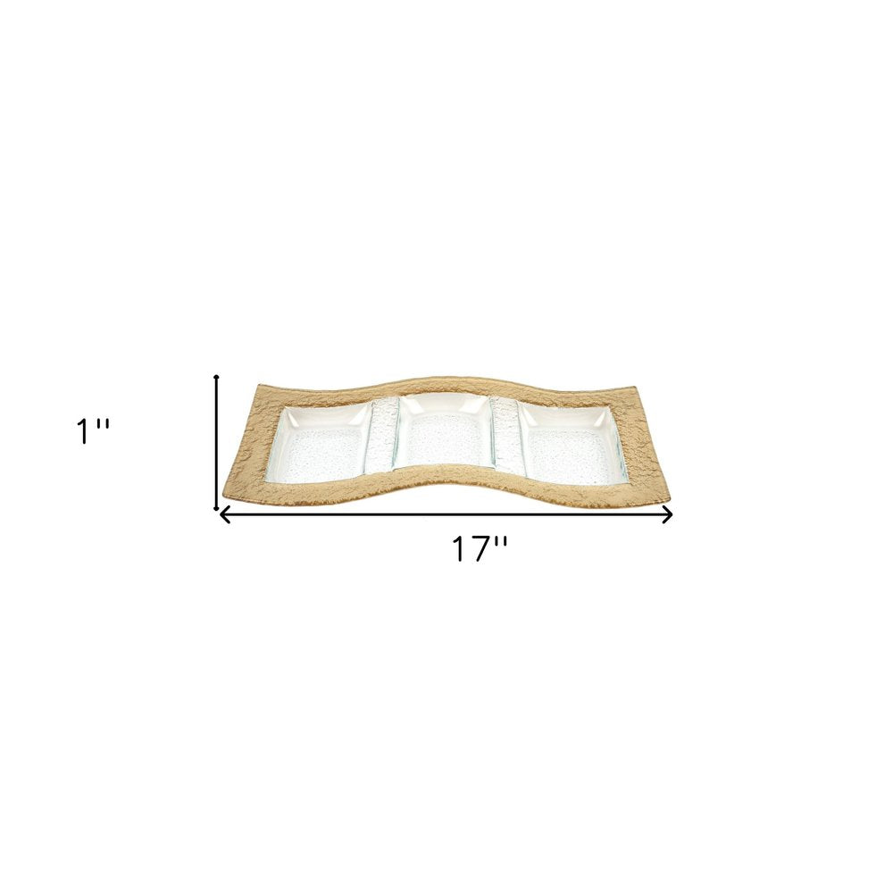 17" Clear And Gold Rectangular Glass Handmade Divided Serving Dish