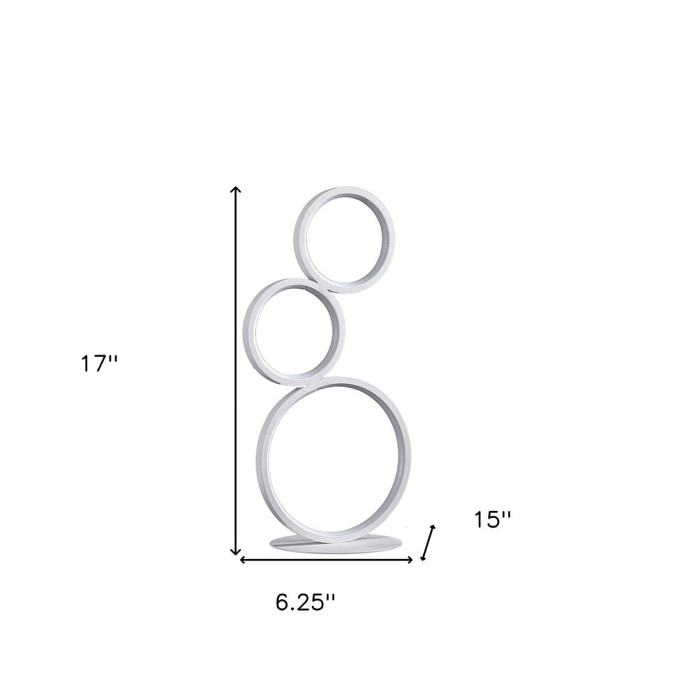 Embrace the good life with this hard working and stylish 17-inch white metal three light round table lamp with white. A gorgeous white metal base brings just the right amount of pizzazz to this fabulous lamp. This standard table lamp is designed to provide general lighting to the area. Integrated led technology is energy efficient and gives this lamp a cool and modern look the light that this lamp throws is soft and warm to elevate the look of most any space in your home. Bring some lite and good vibes into your space with this updated and stylishly designed lamp. 17-inch H x 6.25-inch W x 15-inch D
