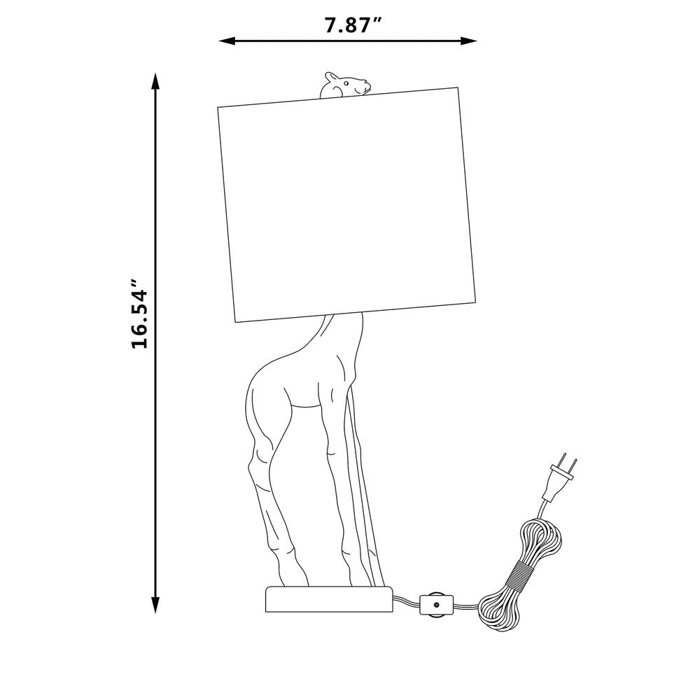 This 17-inch white textured giraffe table lamp with white drum shade is the perfect combination of design and function. The lamp is made of sturdy resin and features a white color. The white drum fabric shade is a great compliment to this lamp. This standard table lamp is designed to provide general lighting to the area. High quality design makes this a great lamp for not only lighting, but accenting a room with style. The perfect lamp to create just the right natural and soothing light in your space. 16.54-inch H x 7.87-inch W x 7.87-inch D