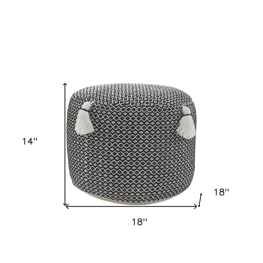 18" Black Cotton Cylinder Geometric Pouf Ottoman