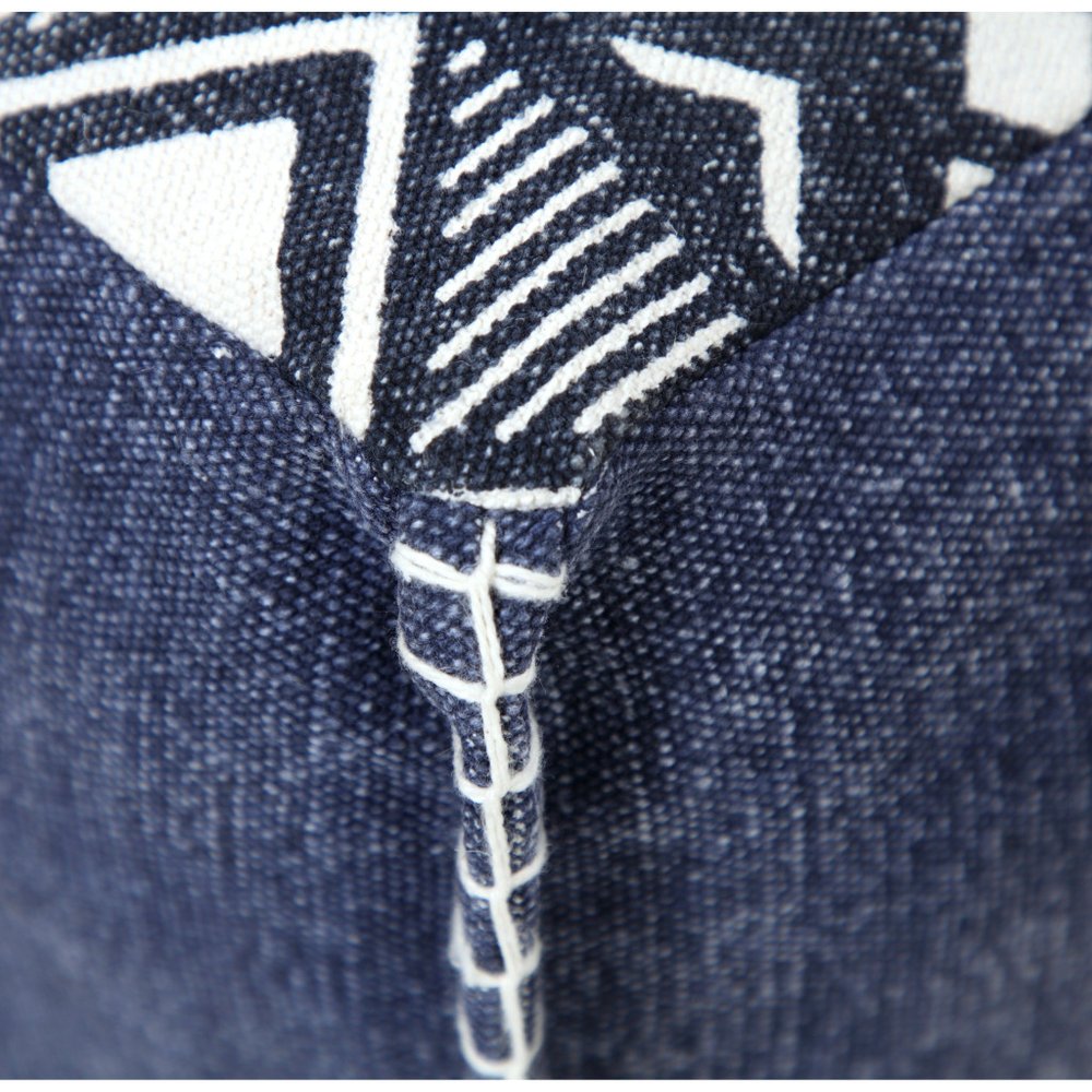 18" Blue Cotton Geometric Pouf Ottoman