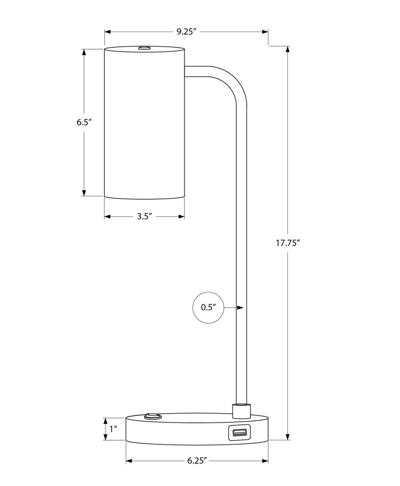 Bring of level of elegance and freshness to your space with this high quality 18-inch gray metal round usb table lamp with gray cylinder shade. A gorgeous gray metal base brings just the right amount of pizzazz to this fabulous lamp. The gray shade has a cylinder shape and is made from metal. This standard table lamp is designed to provide general lighting to the area. Use this lamp anywhere and elevate the look of the whole space. It is perfect for virtually any decor. 17.75-inch H x 9.25-inch W x 6.25-inch D