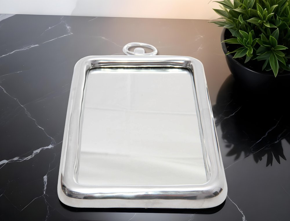 This 18-inch silver aluminum framed accent mirror is an embellishment perfect for your rooms. Inside the frame there is a rectangle shaped mirror which will open up any space you hang this piece in. The mirror of contemporary style can also decorate your room and bring brightness to your living space. This mirror can fit perfectly in any space and give that space a distinctive look. 17.5-inch H x 10.8-inch W x 1.3-inch D