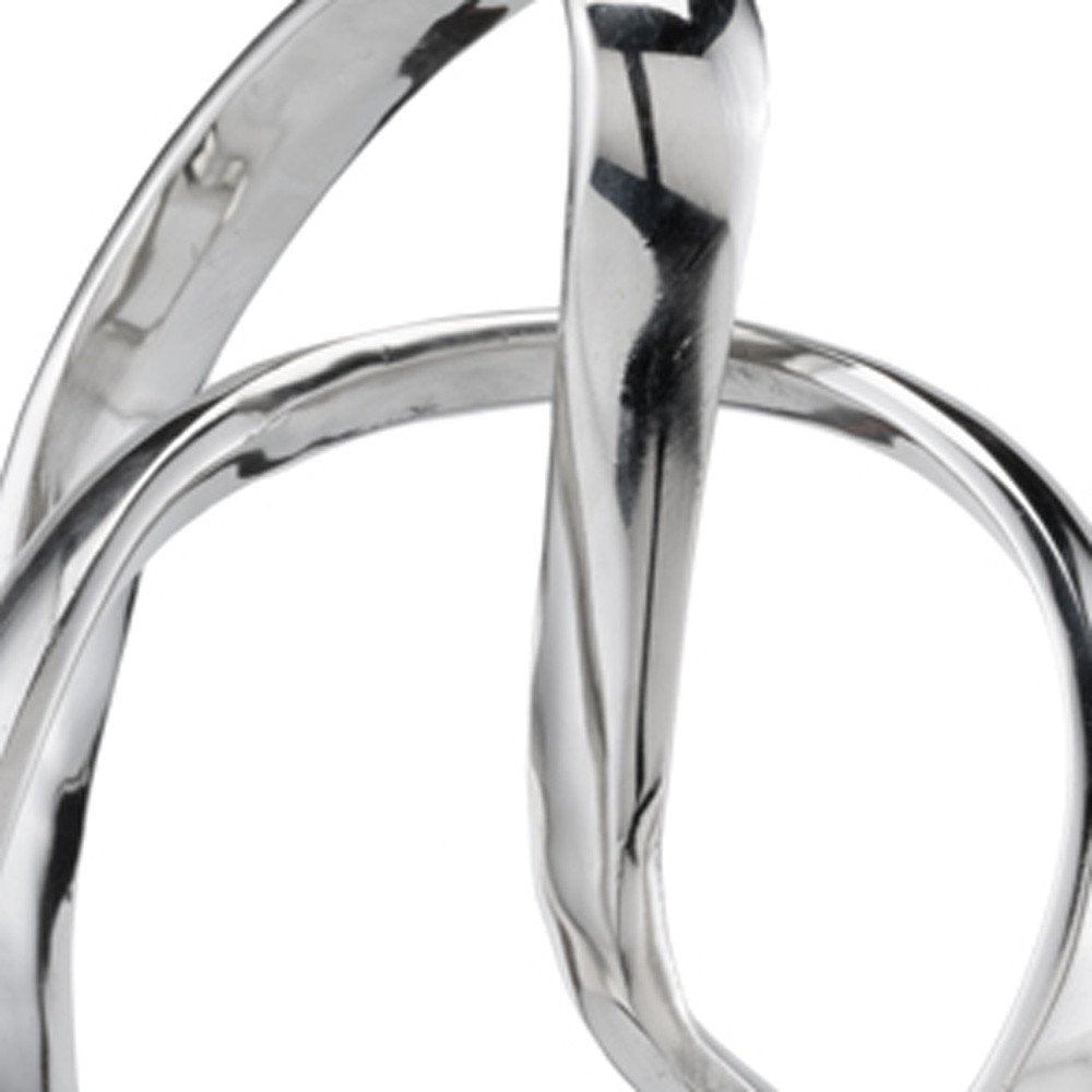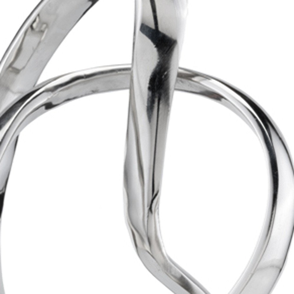The 18-inch silver and white marble and aluminum sculpture is the perfect decorative accessory for your home. This modern tabletop sculpture is made of high quality marble and aluminum and will look great in most any space. The rectangular base gives way to two intertwined loops of buffed shiny aluminum in a silver finish that is unique and contemporary. 17.5-inch H x 5.5-inch W x 7.5-inch D