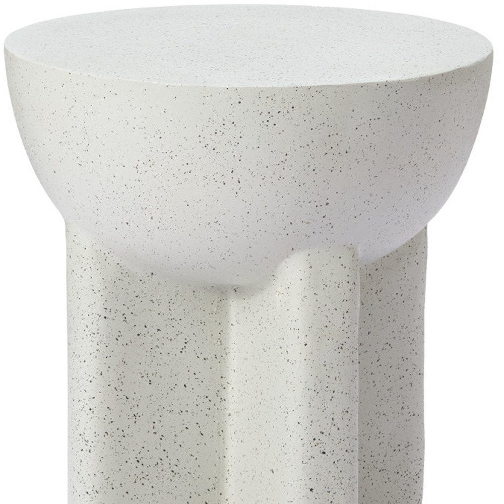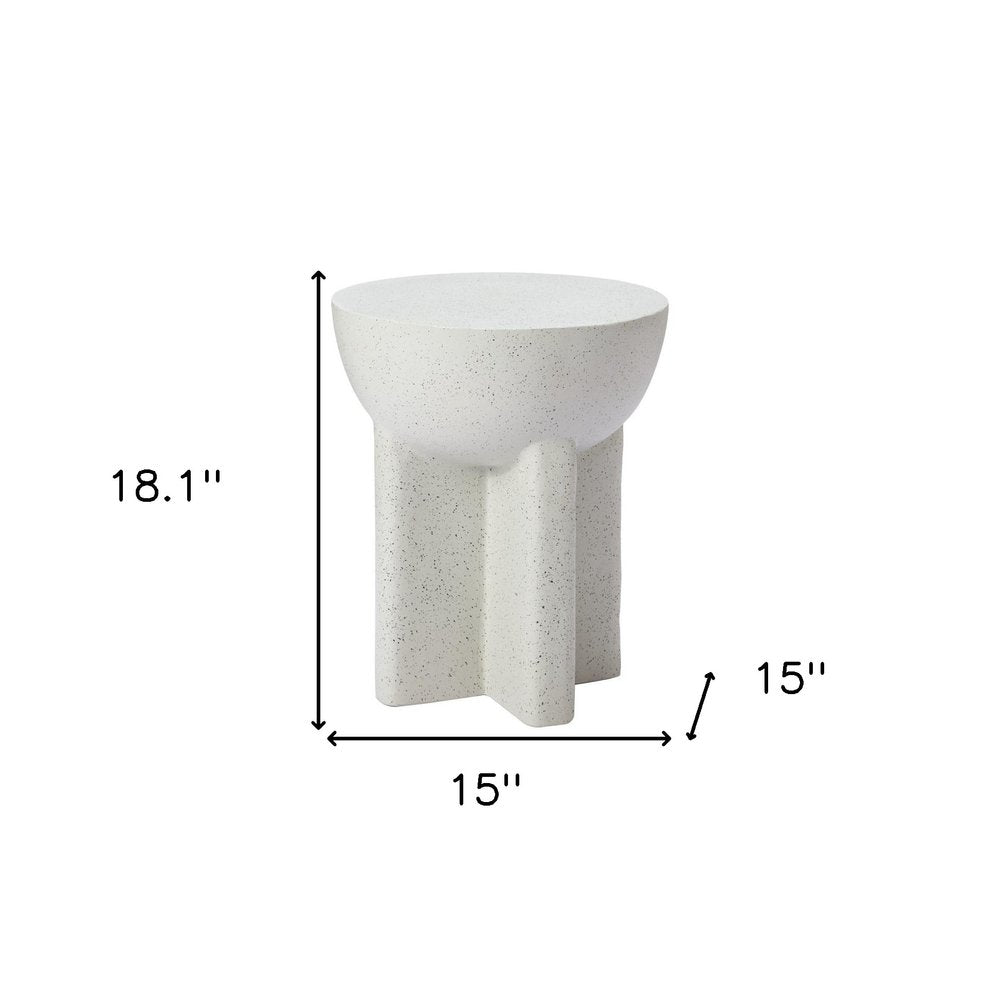 Optimize your space and add some charm to your room with the 18-inch white faux stone round pedestal end table. This table features a unique geometric pedestal shape and quality construction from a terrazzo style faux stone with an updated white speckle throughout the top and base. Side tables are a great way to flank your sofa, use as an accent next to your favorite chair, or can even be used bedside. You can also use it as an entryway table to hold your keys. 18.1-inch h x 15-inch w x 15-inch d.