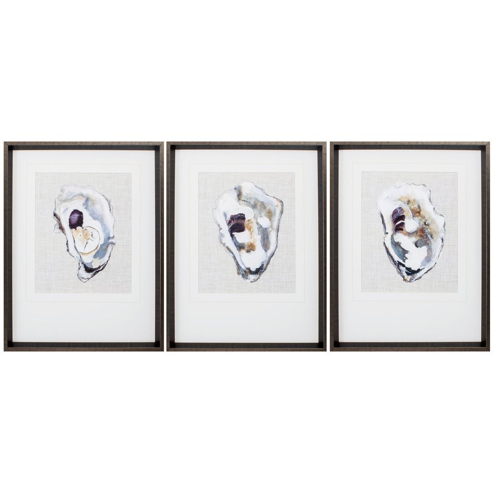 18" X 24" Brushed Silver Frame Oyster Shell Study (Set Of 3)