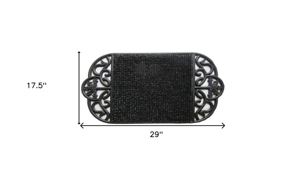 Ready to withstand heavy foot traffic, this 18-inch x 29-inch black rubber outdoor oval door mat is an ideal option for the front door or entrance way of your home or business. Crafted from rubber, this mat is not only functional but is a visually appealing accessory to welcome people to your home or business. Add this decorative mat to create a practical yet inviting welcome to all who enter. 17.5-inch H x 29-inch W x 0.25-inch D