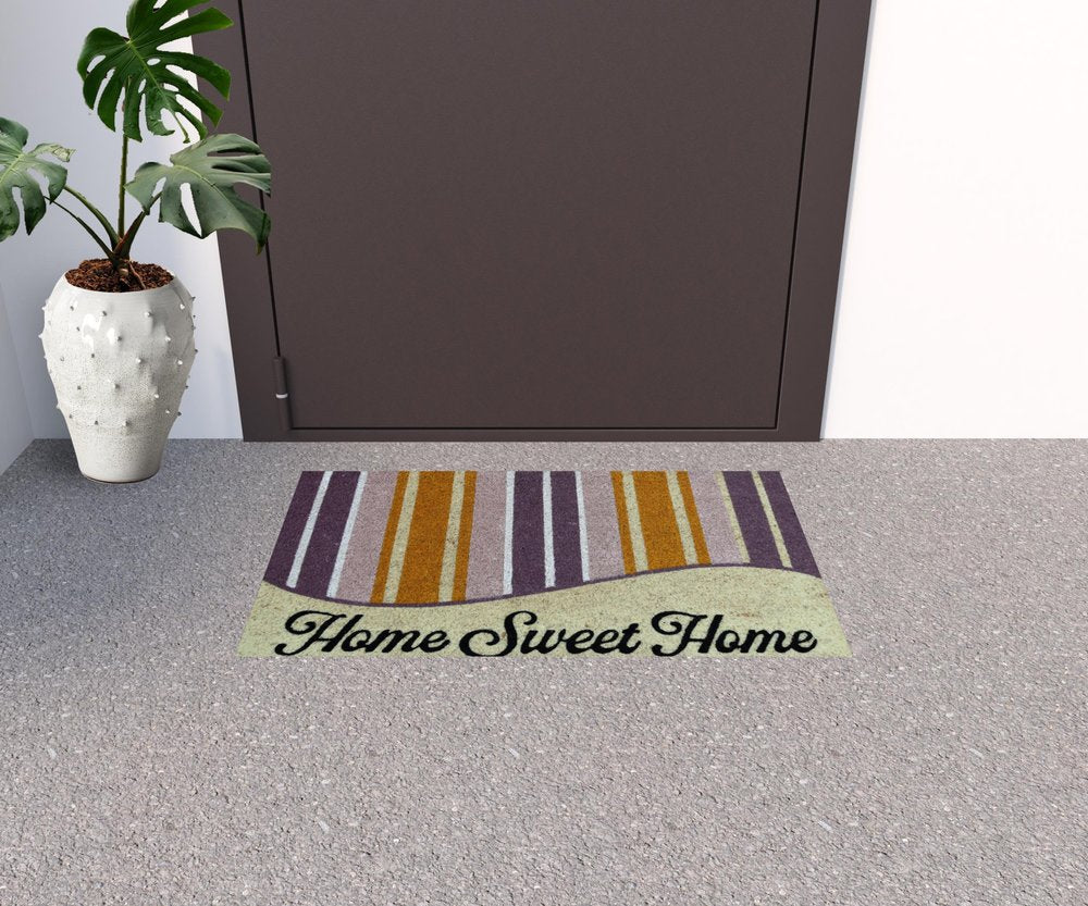 Known for it's extreme durability and ability to withstand heavy foot traffic, this 18-inch x 30-inch beige and black coir home sweet home outdoor door mat is an ideal option for the front door or entrance way of your home or business. Crafted from coconut husks, this mat is not only functional but is an an eco-friendly and visually appealing accessory. The naturally bristled texture of coir is an efficient way to clean dirt and mud from shoes and is easy to clean and maintain. Add this decorative mat to create a practical yet inviting welcome to all who enter. 18-inch H x 30-inch W x 0.5-inch D