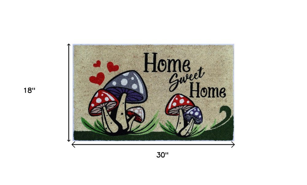 18" X 30" Beige and Black Coir Mushrooms Home Sweet Home Outdoor Door Mat