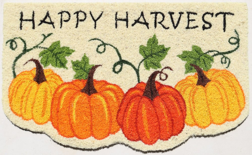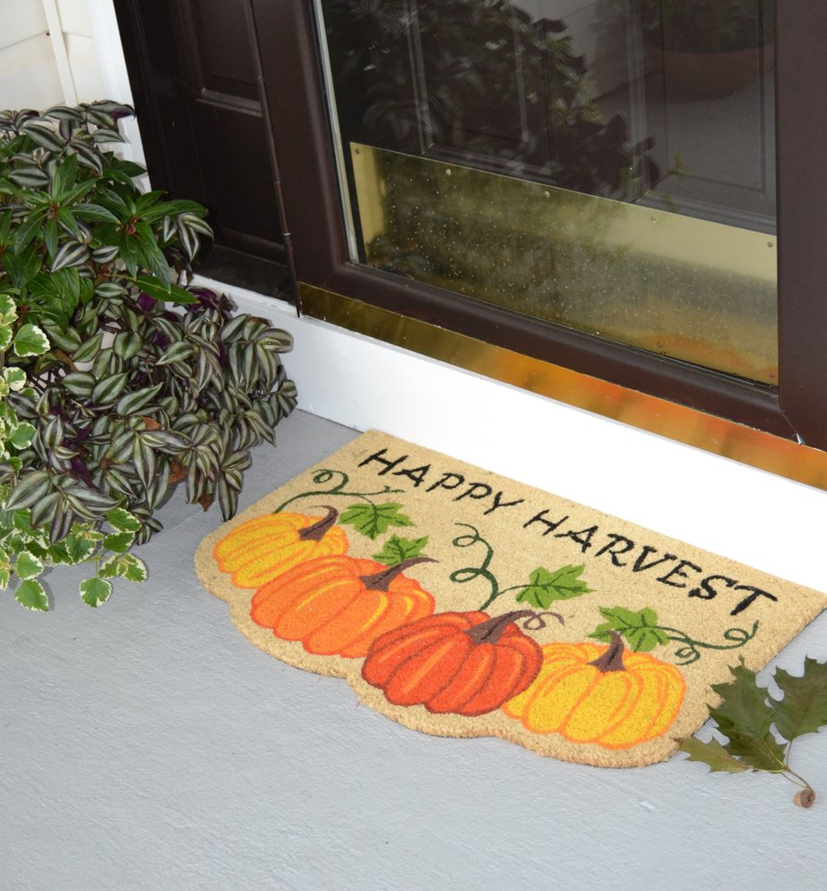Keywords | outdoor thanksgiving door mat, thanksgiving door mat, leaves outdoor thanksgiving door mat, 18" X 30" beige orange coir pumpkins, pumpkins leaves outdoor thanksgiving |