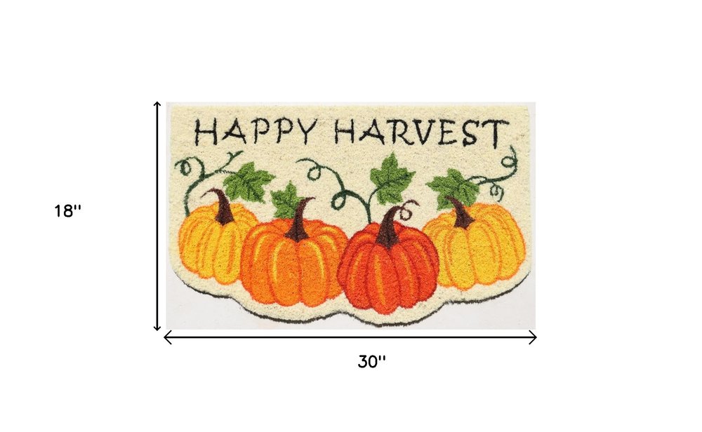 18" X 30" Beige and Orange Coir Pumpkins and Leaves Outdoor Thanksgiving Door Mat