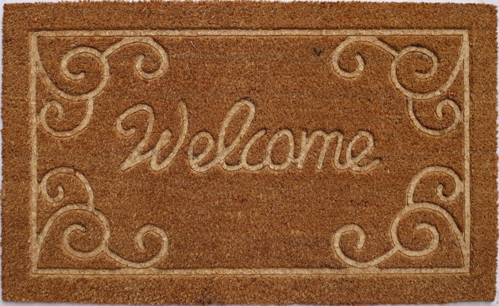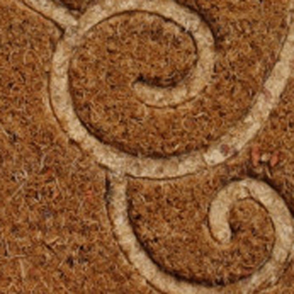 Known for it's extreme durability and ability to withstand heavy foot traffic, this 18-inch x 30-inch beige and white coir vines welcome outdoor door mat is an ideal option for the front door or entrance way of your home or business. Crafted from coconut husks, this mat is not only functional but is an an eco-friendly and visually appealing accessory. The naturally bristled texture of coir is an efficient way to clean dirt and mud from shoes and is easy to clean and maintain. Add this decorative mat to create a practical yet inviting welcome to all who enter. 18-inch H x 30-inch W x 0.5-inch D