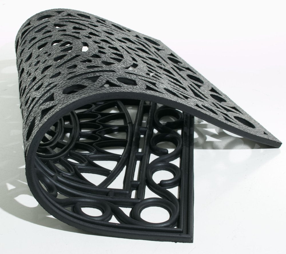 Ready to withstand heavy foot traffic, this 18-inch x 30-inch black rubber outdoor door mat is an ideal option for the front door or entrance way of your home or business. Crafted from rubber, this mat is not only functional but is a visually appealing accessory to welcome people to your home or business. Add this decorative mat to create a practical yet inviting welcome to all who enter. 18-inch H x 30-inch W x 0.5-inch D