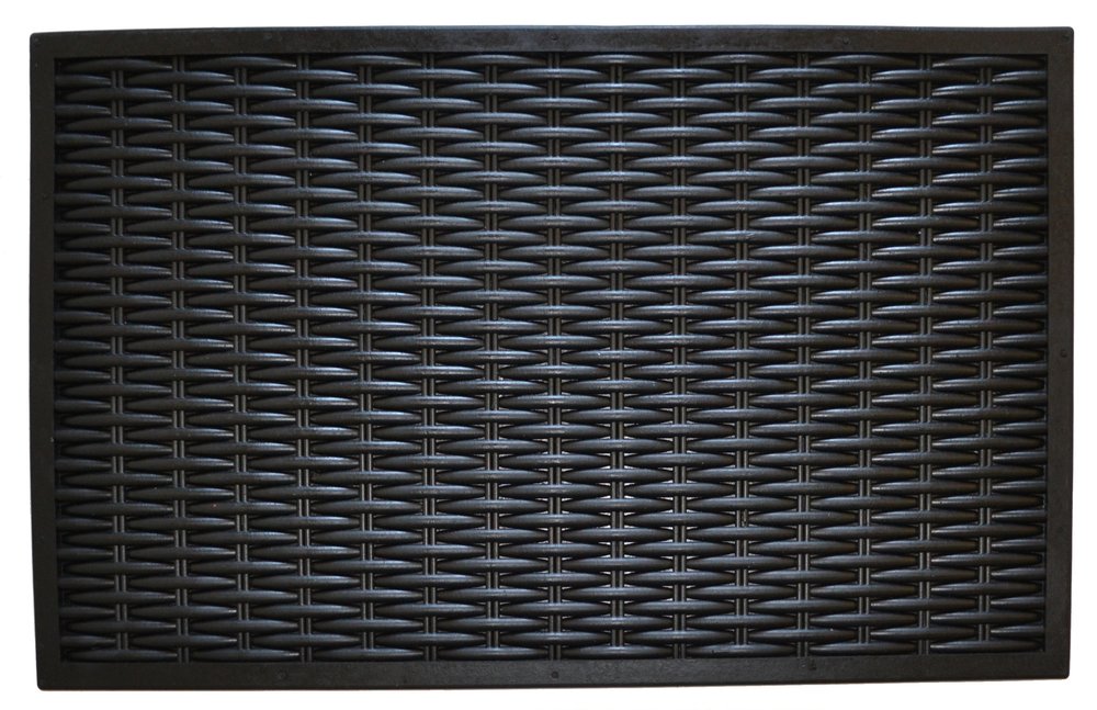 Ready to withstand heavy foot traffic, this 18-inch x 30-inch black rubber outdoor door mat is an ideal option for the front door or entrance way of your home or business. Crafted from rubber, this mat is not only functional but is a visually appealing accessory to welcome people to your home or business. Add this decorative mat to create a practical yet inviting welcome to all who enter. 18-inch H x 30-inch W x 0.5-inch D