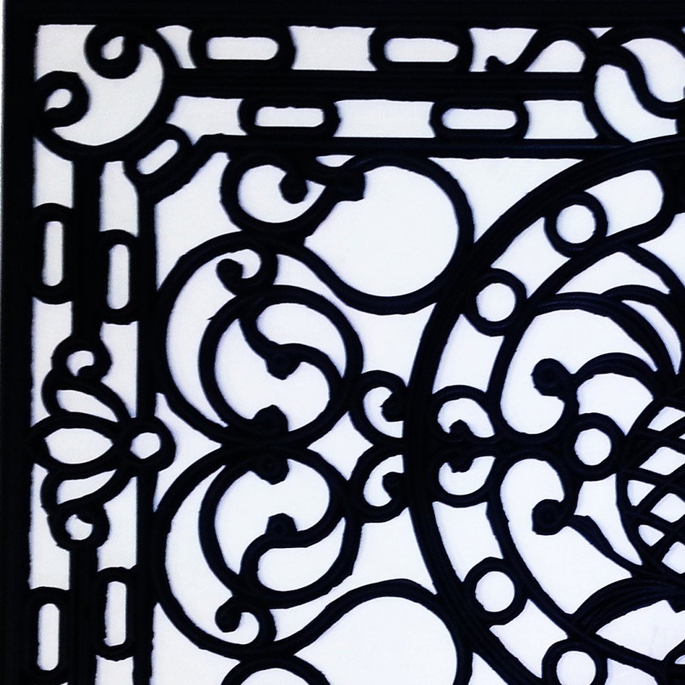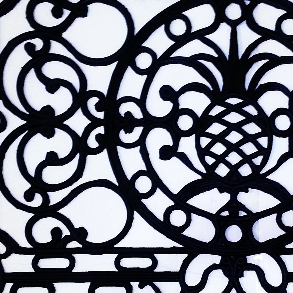 Ready to withstand heavy foot traffic, this 18-inch x 30-inch black rubber pineapple outdoor door mat is an ideal option for the front door or entrance way of your home or business. Crafted from rubber, this mat is not only functional but is a visually appealing accessory to welcome people to your home or business. Add this decorative mat to create a practical yet inviting welcome to all who enter. 18-inch H x 30-inch W x 0.5-inch D