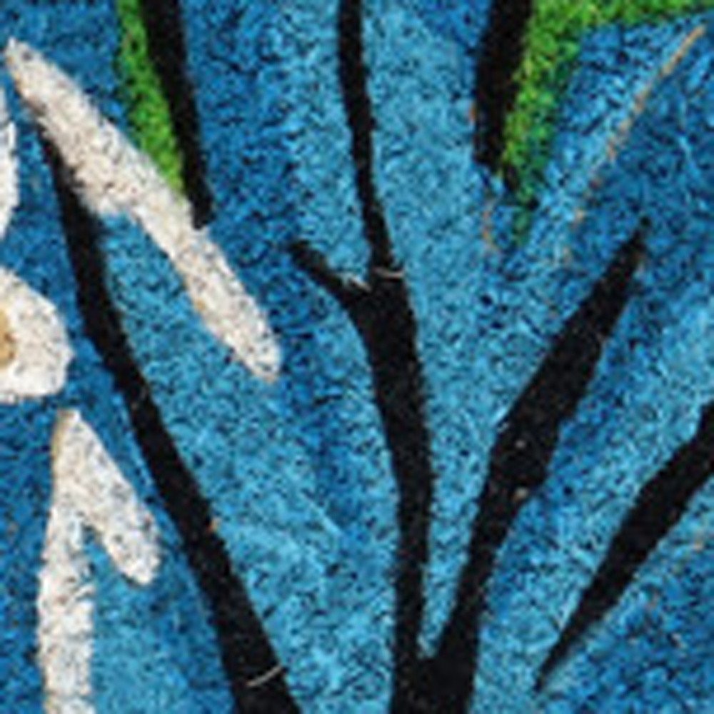Known for it's extreme durability and ability to withstand heavy foot traffic, this 18-inch x 30-inch blue and pink coir floral outdoor door mat is an ideal option for the front door or entrance way of your home or business. Crafted from coconut husks, this mat is not only functional but is an an eco-friendly and visually appealing accessory. The naturally bristled texture of coir is an efficient way to clean dirt and mud from shoes and is easy to clean and maintain. Add this decorative mat to create a practical yet inviting welcome to all who enter. 18-inch H x 30-inch W x 0.5-inch D