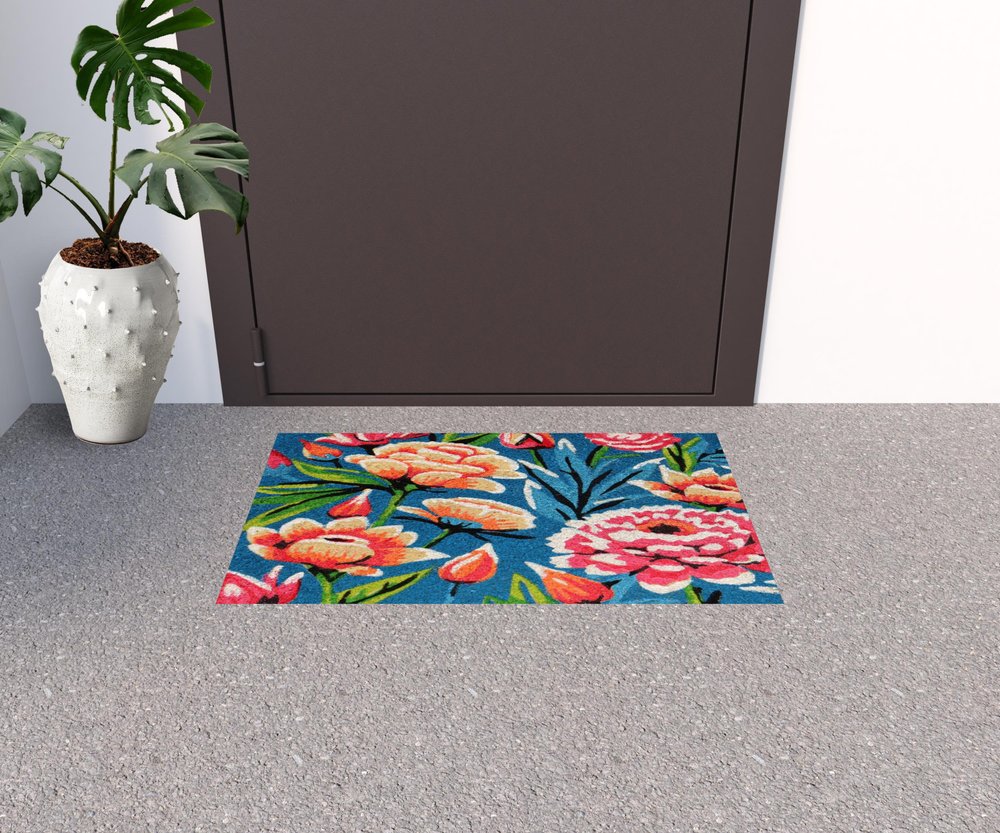 18" X 30" Blue and Pink Coir Floral Outdoor Door Mat
