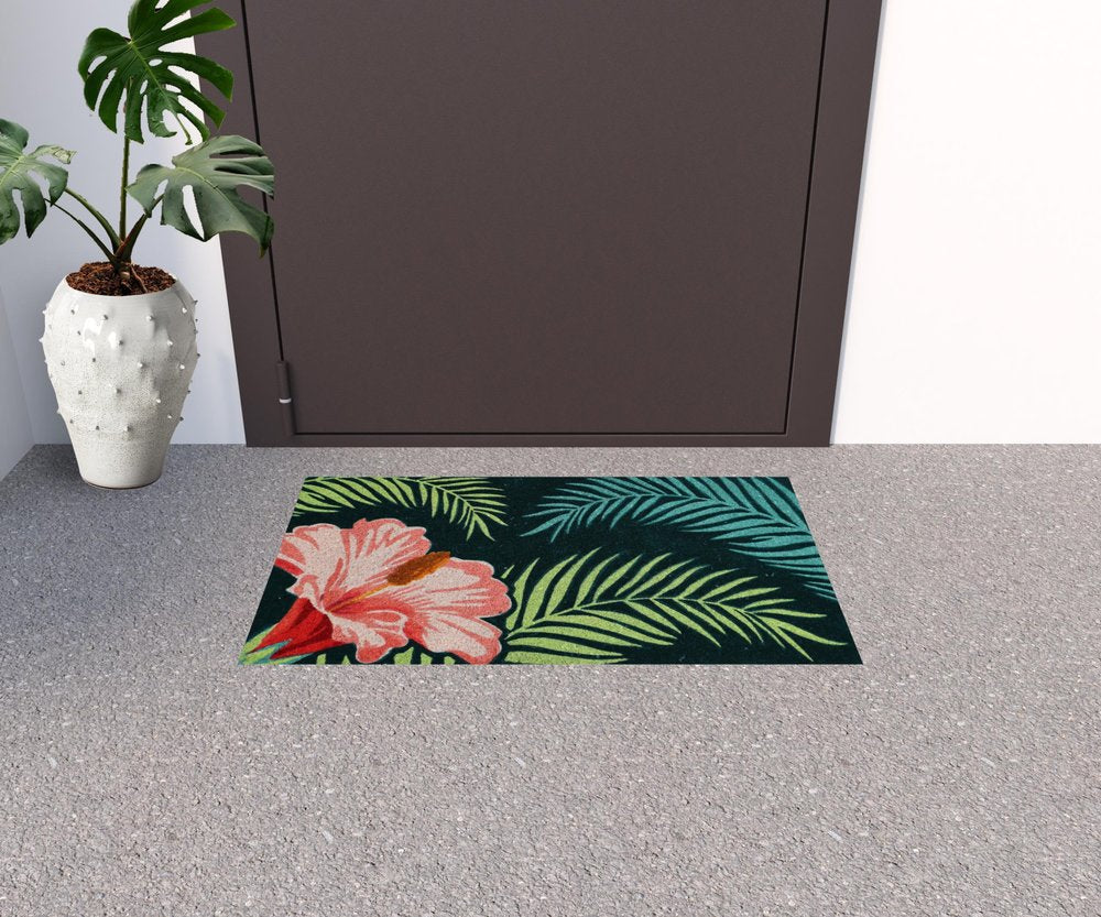 18" X 30" Blue and Pink Coir Tropical Outdoor Door Mat