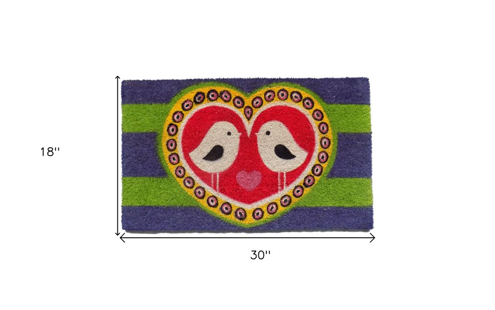 18" X 30" Red and Green Coir Heart Outdoor Door Mat