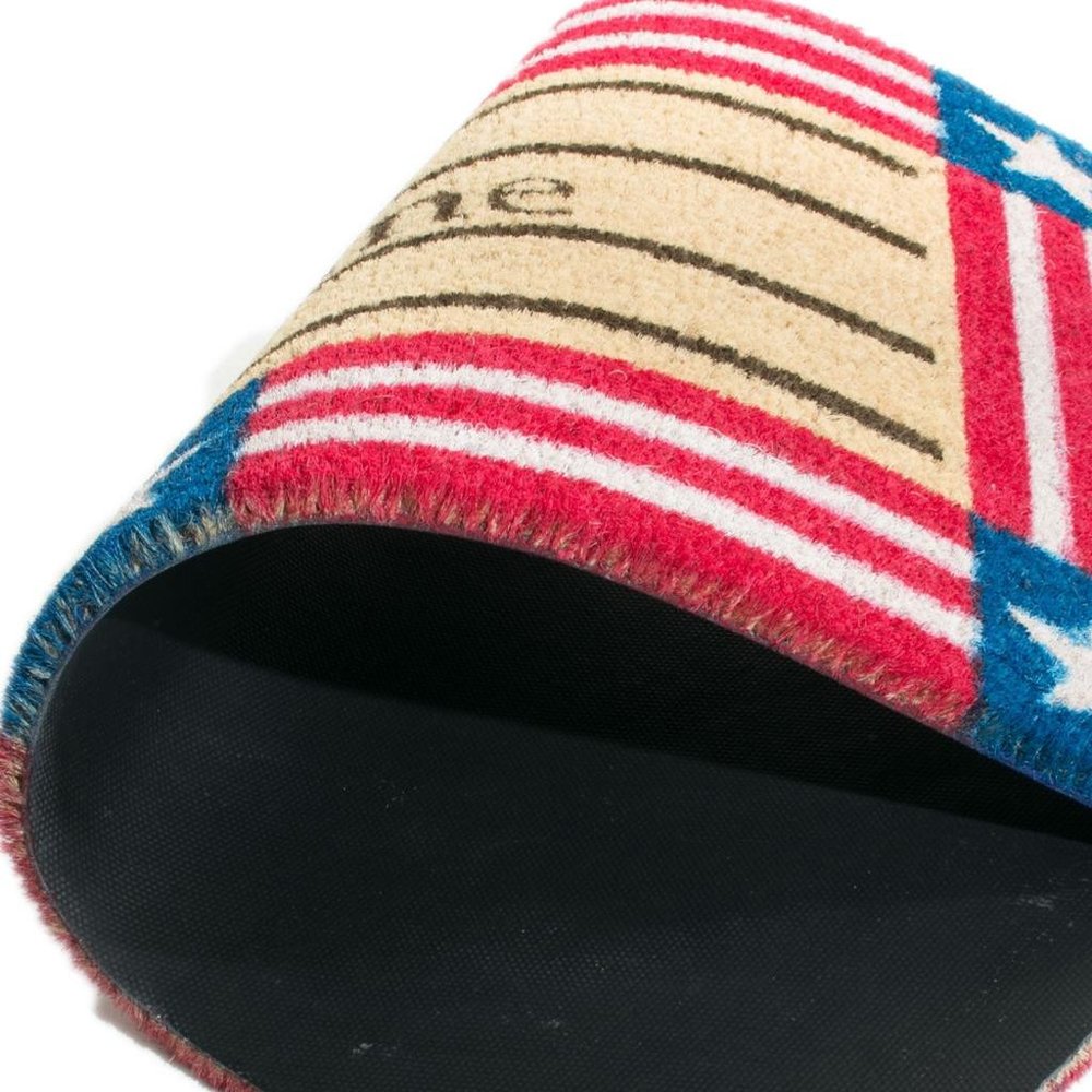 Known for it's extreme durability and ability to withstand heavy foot traffic, this 18-inch x 30-inch red white and blue coir patriotic welcome outdoor door mat is an ideal option for the front door or entrance way of your home or business. Crafted from coconut husks, this mat is not only functional but is an an eco-friendly and visually appealing accessory. The naturally bristled texture of coir is an efficient way to clean dirt and mud from shoes and is easy to clean and maintain. Add this festive and decorative independence day mat to create a practical yet inviting welcome to all who enter. 18-inch H x 30-inch W x 0.5-inch D