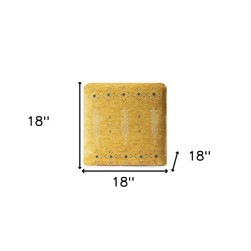 18" Yellow Abstract Pouf Ottoman