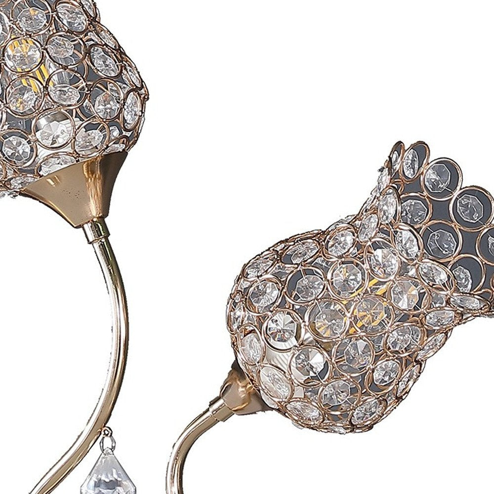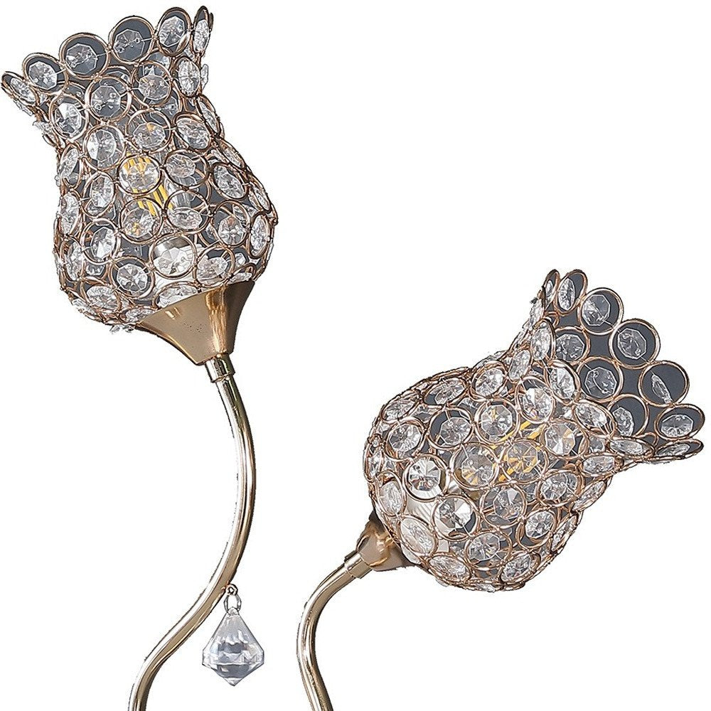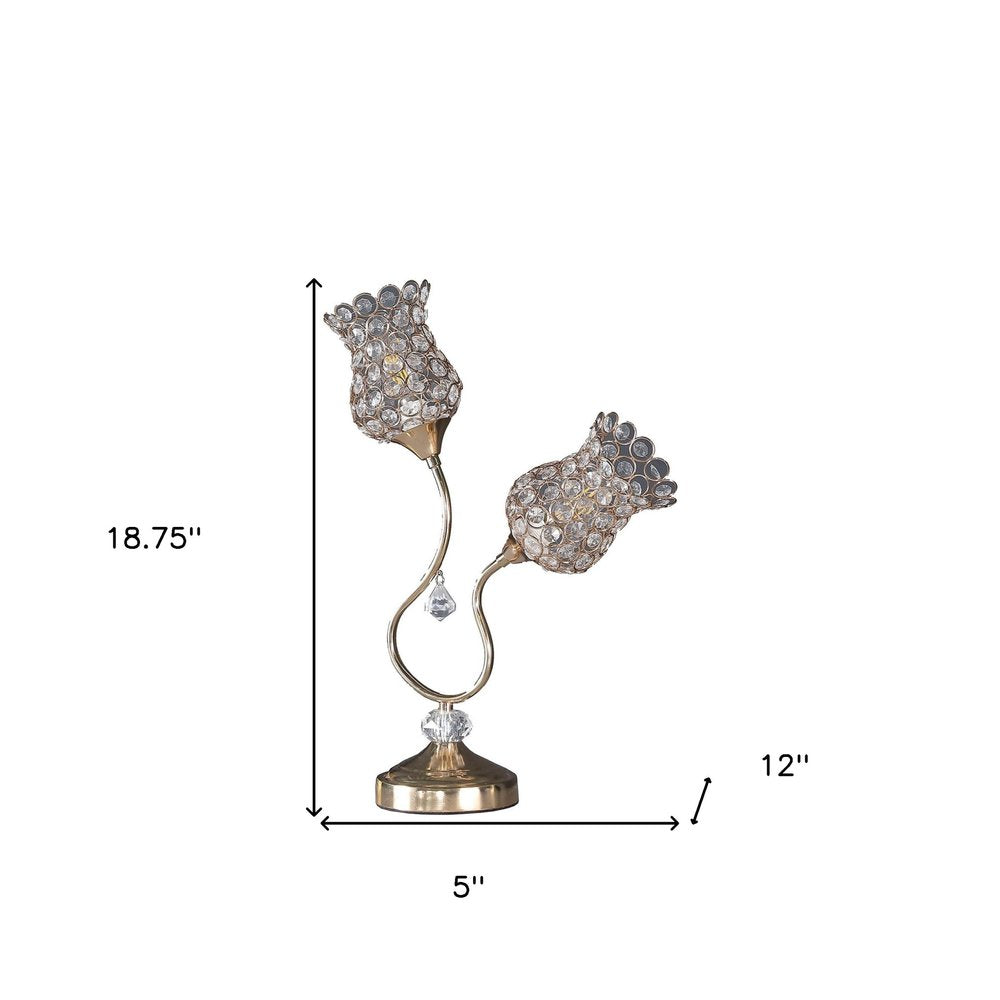 With this 19" gold two light bedside table lamp with clear novelty shade you can bring in design to any space along with adding some ambient lighting. Includes a clear metal, novelty shaped shade, making this a fashionable piece that will complement most any interior. Bedside table lamps help to add a soft and cozy glow to your bedroom. Great for evening reading! High quality design makes this a great lamp for not only lighting, but accenting a room with style. It is perfect for virtually any decor. 18.75" H x 5" W x 12" D