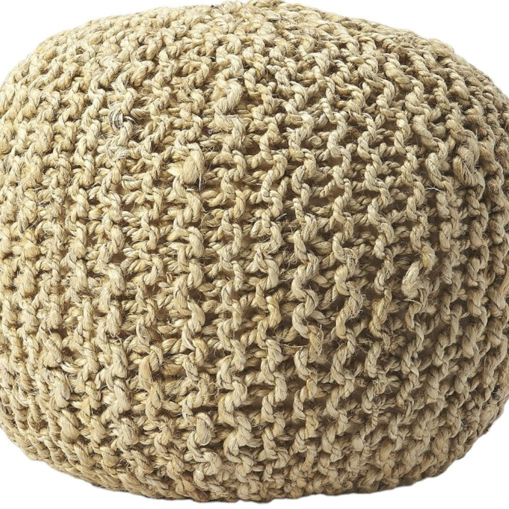 Optimize your space and add some charm to your room with the 19-inch natural jute round pouf ottoman. Add chic style to your space with this fun pouf that not only looks cool but can be a great foot rest or extra seat when needed. Expertly upholstered with padding in a soft solid color jute, this ottoman is as comfortable as it is good looking. Ottomans are multi-functional additions to your space that add fashion and practical value. 16-inch H x 19-inch W x 19-inch D