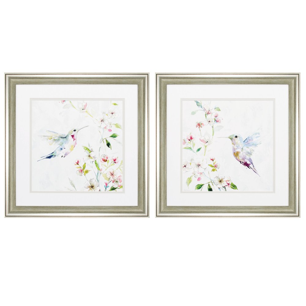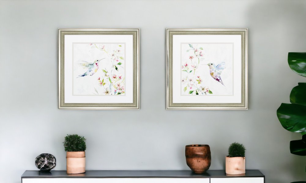 19" X 19" Brushed Silver Frame Hummingbird (Set Of 2)