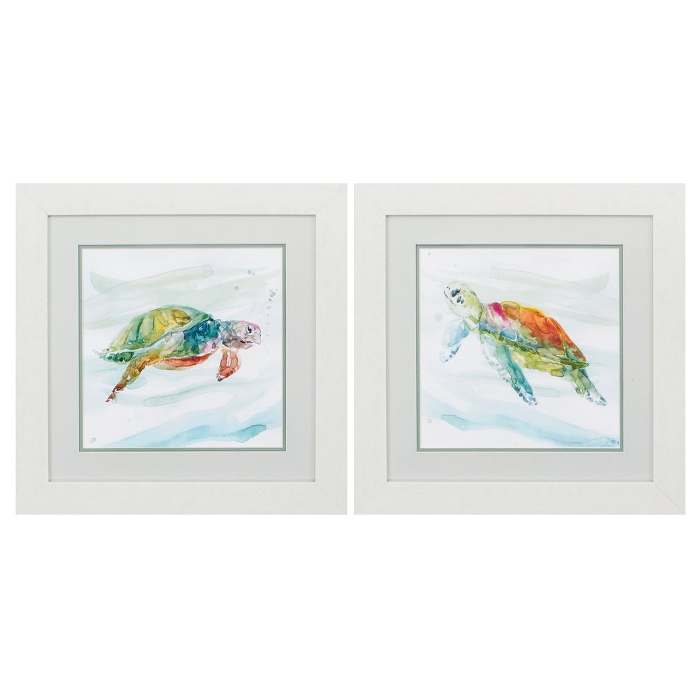 19" X 19" White Frame Turtle Tropics (Set Of 2)