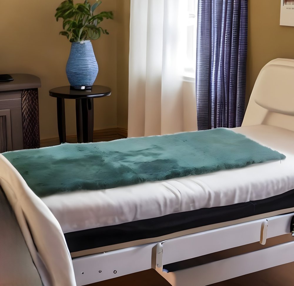 This 2' X 5' Emerald Green Natural off white Medical Grade Sheepskin is made of the highest quality Australian wool that offers the possibility of therapueutic capabilities in addition to its gorgeous and soft decorative hand. Durable and resilient, this ultra plush sheepskin can be naturally healing as it can improve quality of life for those confined to one position for extended periods. The wool's high fiber count facilitates an even distribution of compression and insulation, helping to activate circulation and increase blood flow, both of which are good ways to alleviate pressue on sore points. Because of sheepskin's ability to maintain a dry environment, the pelt helps prevent a build-up of bacteria and the development of skin irritations caused by friction or immobility. Its fibers are breathable, moisture absorbing, and promote air flow, with natural thermal properties that help balance temperature. This will help to keep you cool in the summer and warm in the winter. Machine washable and easy to care for, we hope that this medical use sheepskin will help keep you comfortable and improve your well being will looking luxurious and refined at the same time. 1" x 30" x 60". Can be used as bed padding, chair pad, or blanket. Due to the genuine and natural nature of this product the exact sizes and colorations might vary.