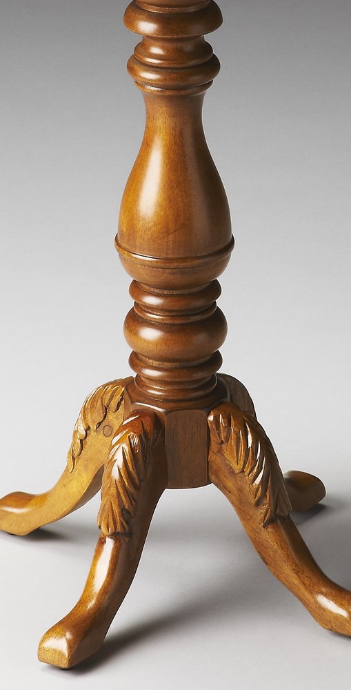 Optimize your space and add some charm to your room with the 20" medium brown and olive ash wood floral top end table. The top of this manufactured wood table is olive ash, while the base is a nice compliment in medium brown. The purposefully distressed finish gives this table an authentically rustic feel. A great accent on either side of the sofa or bed, this adorable end or side table is just what you need. You can match it with other pieces to get the ideal look for your place. 20" H x 12" W x 12" D